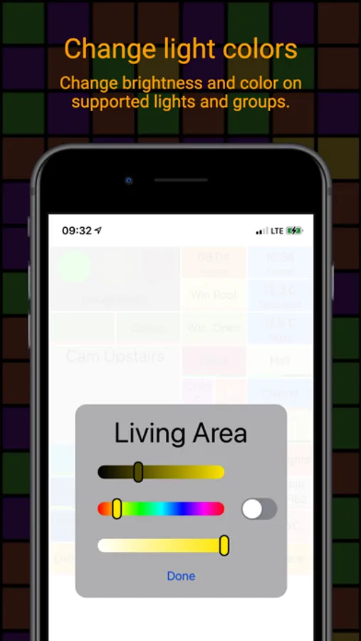 Turning a light on or off is as easy as tapping the associated control on screen. For more detailed settings, briefly hold a control to access e.g. dimmer settings.