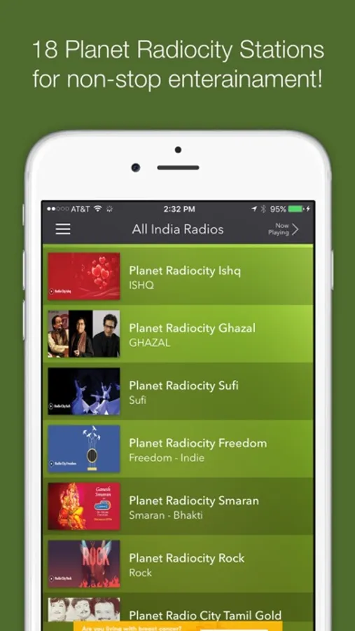 You now have best of both the worlds - AIR (Akashvani, Vividh Bharati, and all other regional language AIR stations) PLUS new-generation FM radios such of Bollywood Hungama (18 stations), Planet Radiocity (18 stations), and several others!