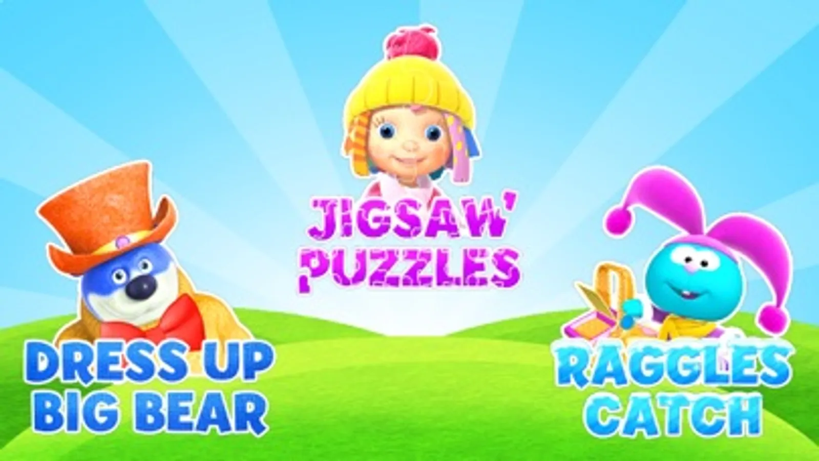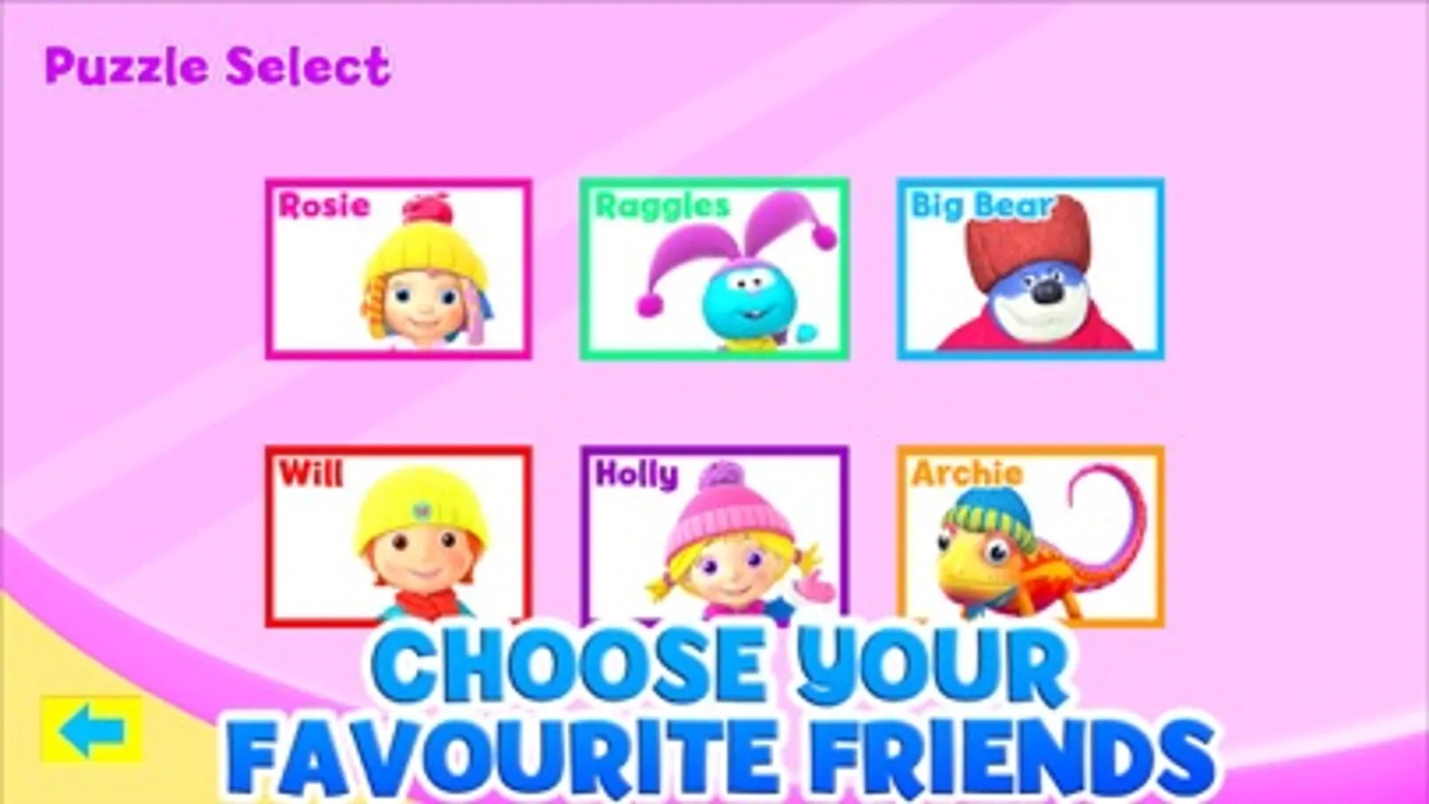 - Choose from 6 character Jigsaw Puzzles (Rosie, Raggles, Holly, Big Bear, Will and Archie)