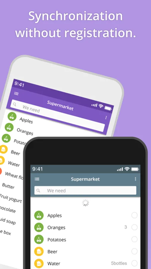 Working through your shopping list is even easier. Thanks to the unique, clear, categorized display and sorting functions, you will be able to complete your shopping in no time at all. With the help of syncing, you can even work with other people or devices on the same shopping list with as many lists as you want.