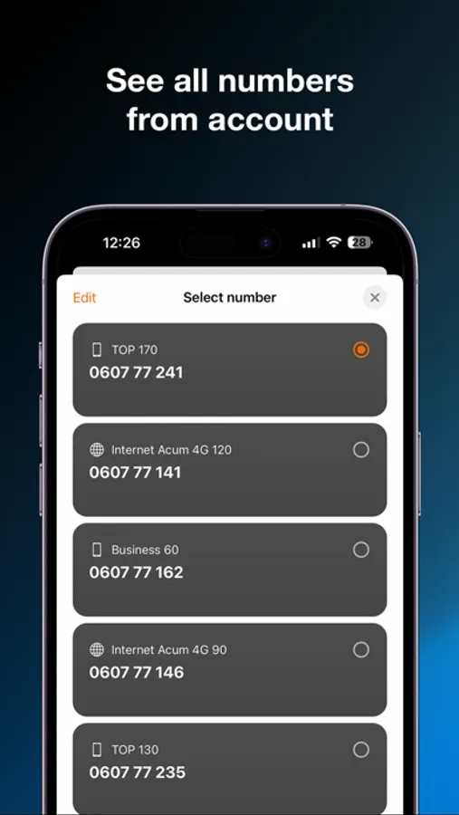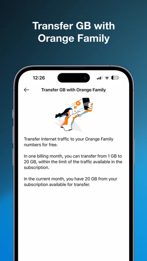 With My Orange you can check your account balance, add options and services, manage Favourite Numbers, recharge online any Orange account with a bank card and change your tariff plan on the go, wherever you are - with just one click.