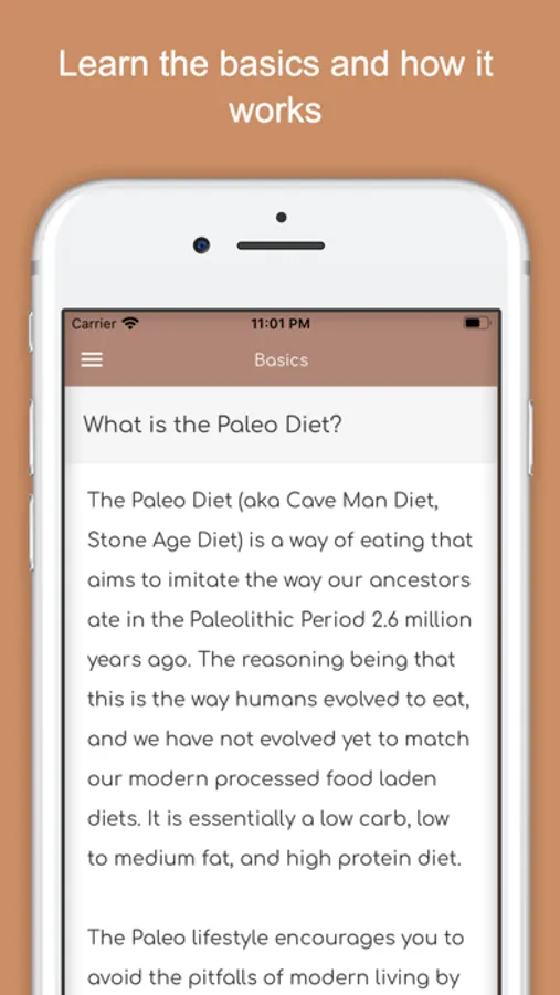 This is a NO-BS guide to the Paleo Diet. Other guides have poor quality information and terrible grammar. We personally researched all of the most accurate and scientific info, and collected it in this App.