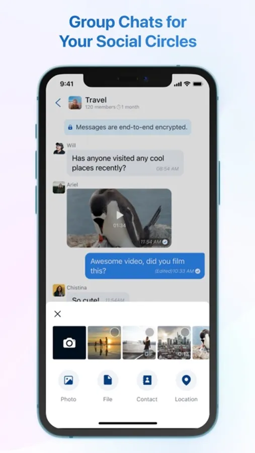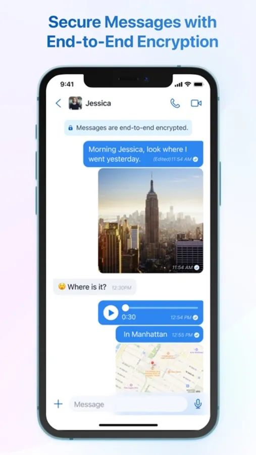 End-to-end encrypted messaging to give you peace of mind about your data security.