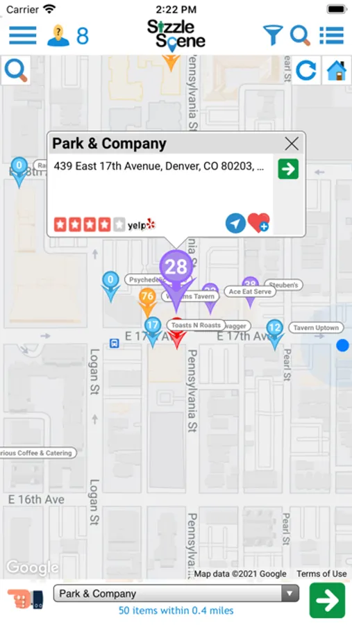- Get more details on places, such as phone, web, pictures, Yelp! score