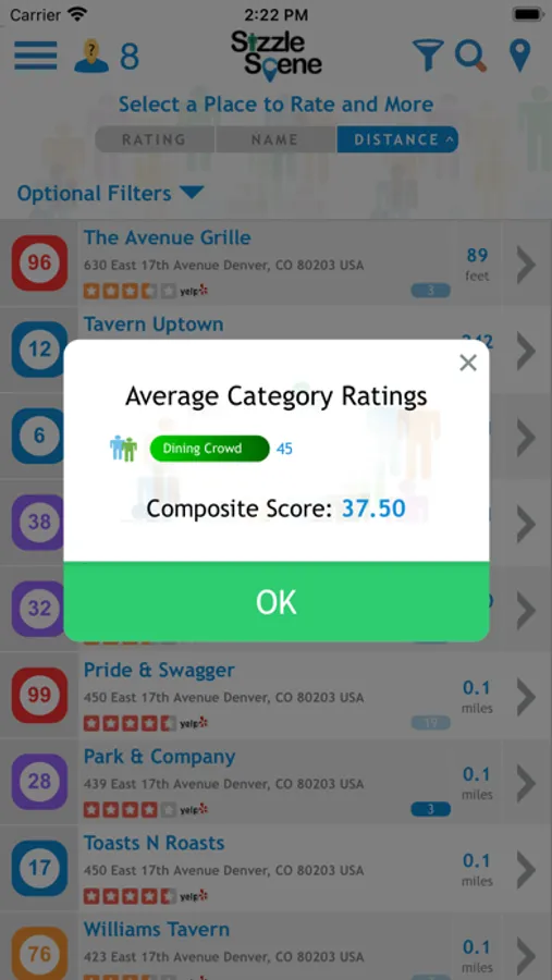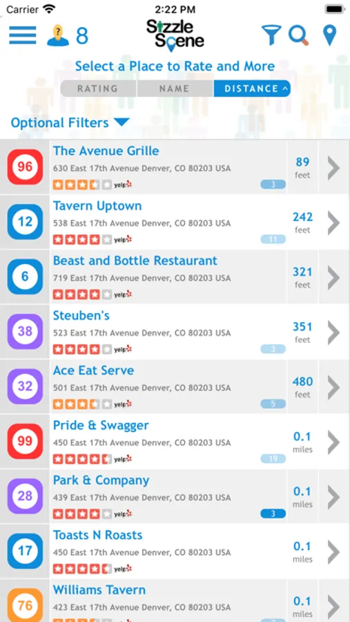 - Sort places by Name, Score, or Distance to quickly see what you want
