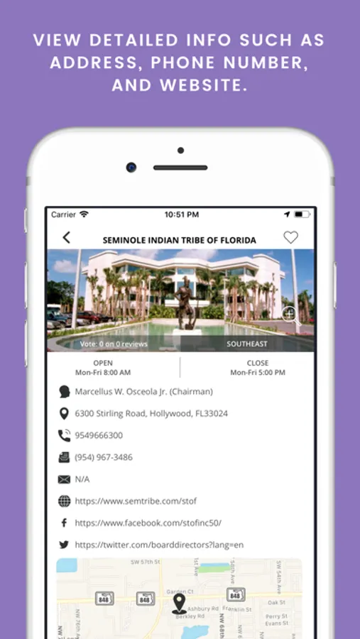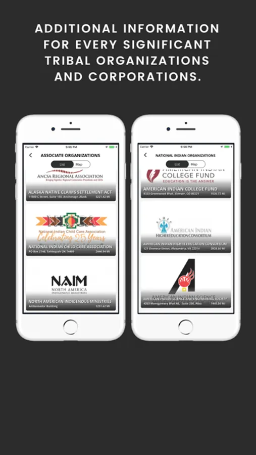 • The ability for users to create accounts to save their favorite locations, as well as submit reviews for tribes, organizations, and corporations.