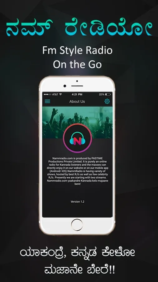 NammRadio a Kannada radio is produced by Pastime Productions Private Limited which has a vision of development of Kannada in online radio platform and to enrich the Kannada language and to take Kannada radio to next level in south Indian radio world.