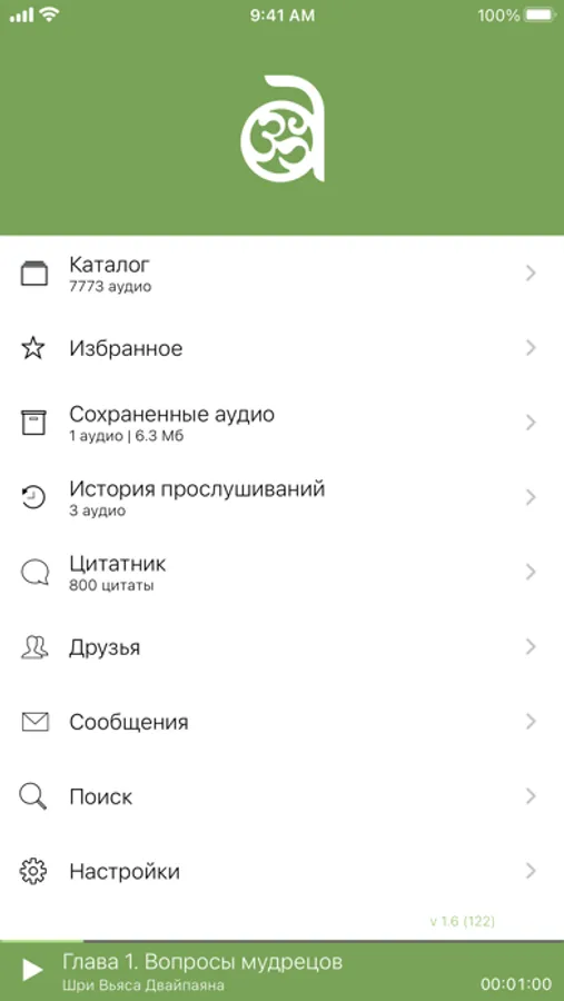 Можно пройти регистрацию прямо в приложении, если еще нет аккаунта на сайте «АудиоВеда».