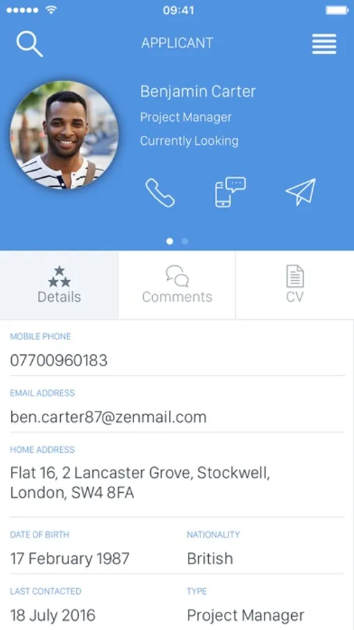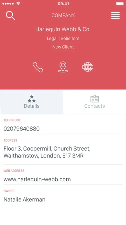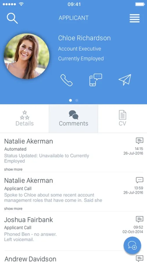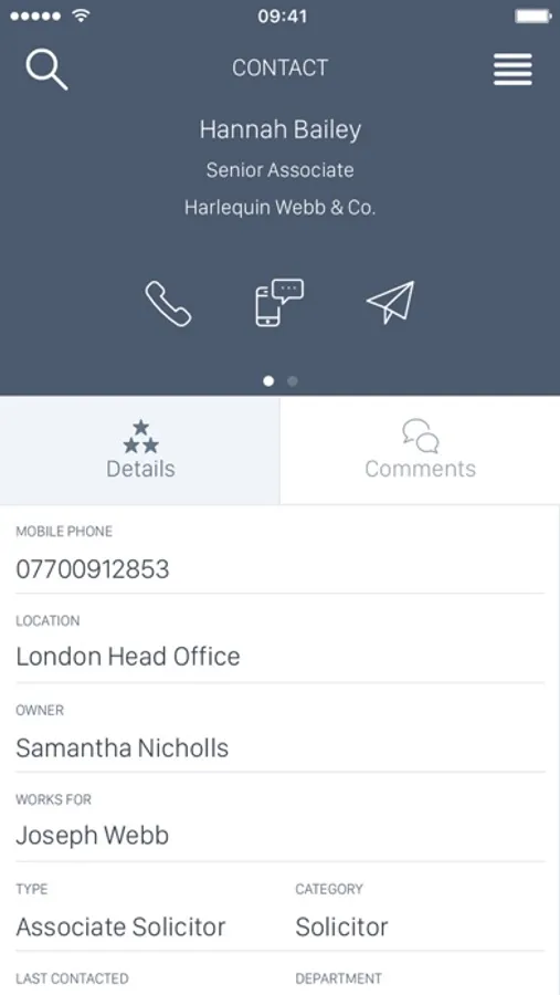 • Call, text and email directly from the app