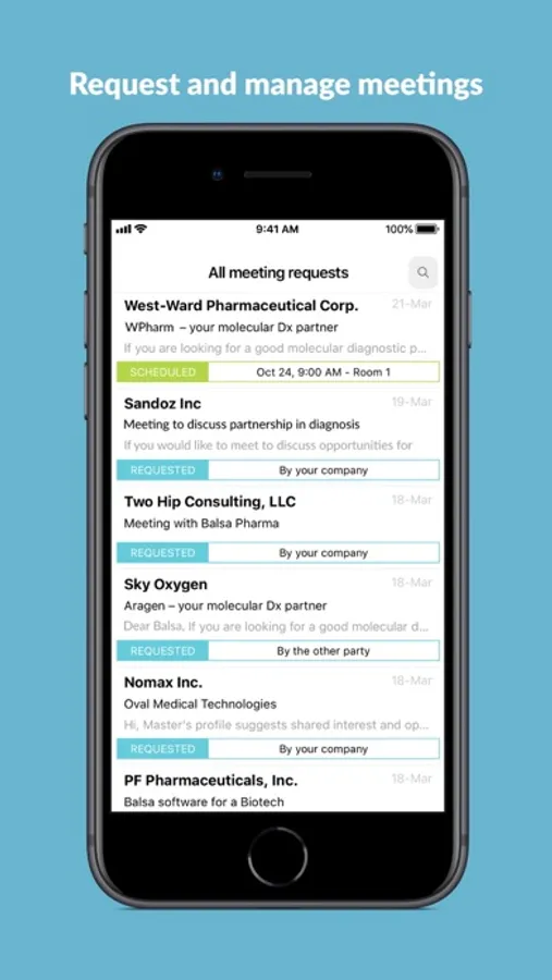 - Send meeting requests to potential business partners and message companies on the go