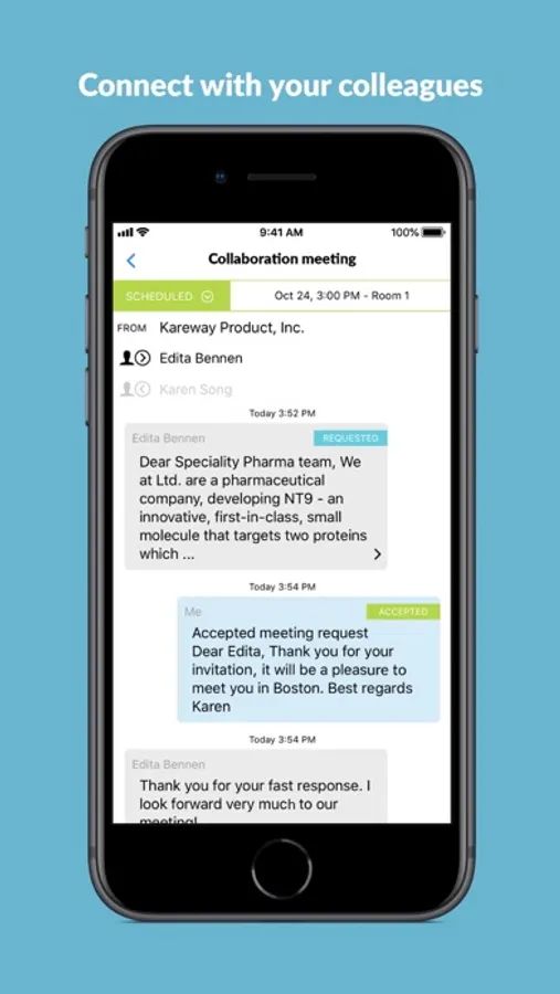- Manage your scheduled partnering meetings directly from the app