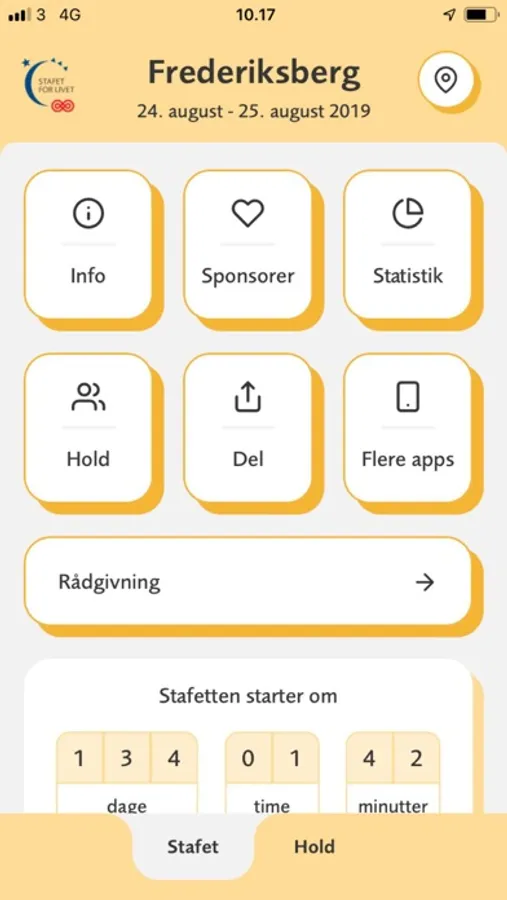 Med app’en får du oplysninger om din lokale stafet, overblik over tilmeldte hold, program og praktiske informationer. App’en indeholder også en rundetæller så de enkelte hold og deltagere nemt kan registrere deres runder.