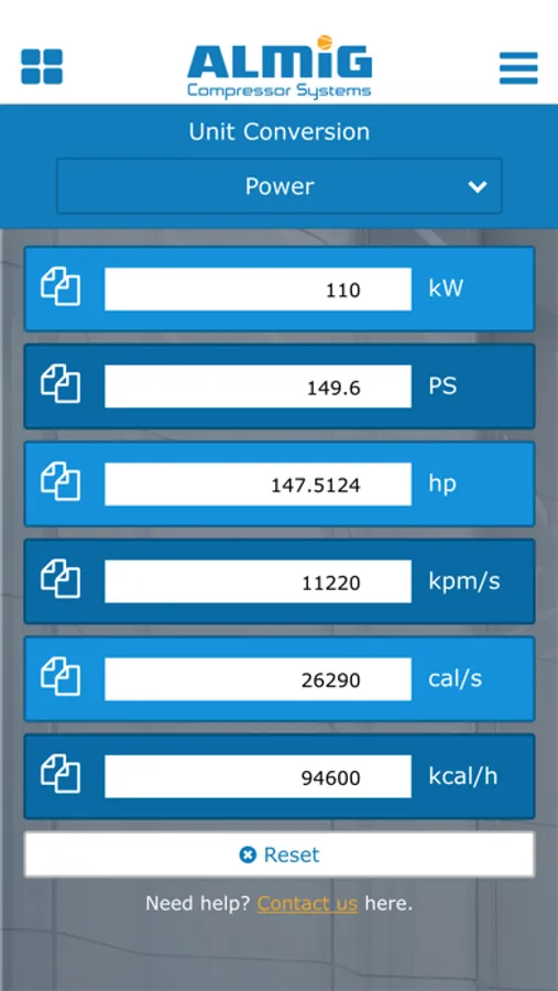 • Unit converter: pressure, volume, power, volume flow, energy and temperature