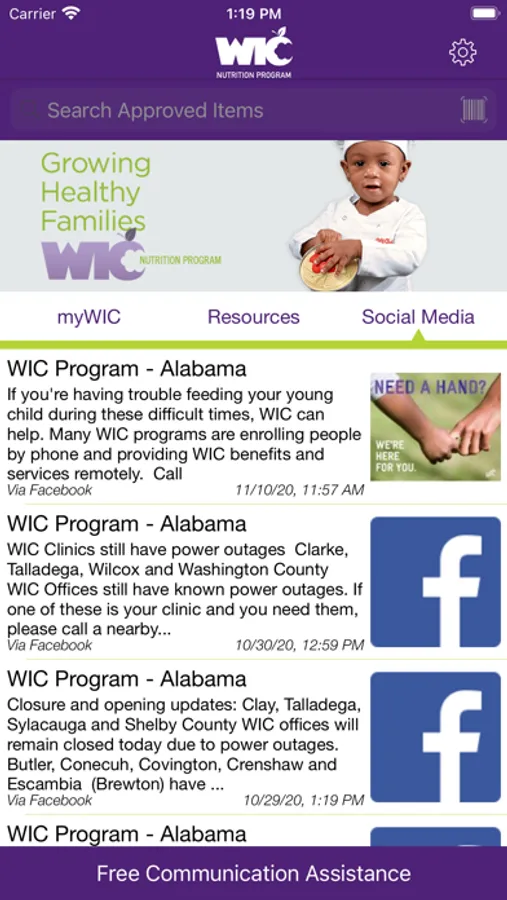 The FREE Alabama WIC app is a one-stop shop to several resources needed when applying for or participating in the Alabama Women, Infant and Children (WIC) Nutrition Program. The app provides easy access to find your nearest clinic, click-to-call feature, eligibility requirements and more. In addition, current participants can find resources such as the WIC approved food brochure, a custom-built appointment reminder, healthy recipes, breastfeeding resources and a convenient link to our online nutrition education website. The app also features our social media posts so you can stay up-to-date with any current WIC news. Let this app help you stay connected with the Alabama WIC Program.