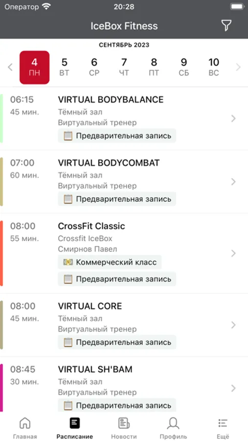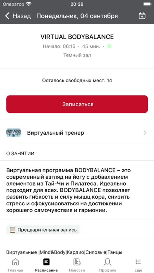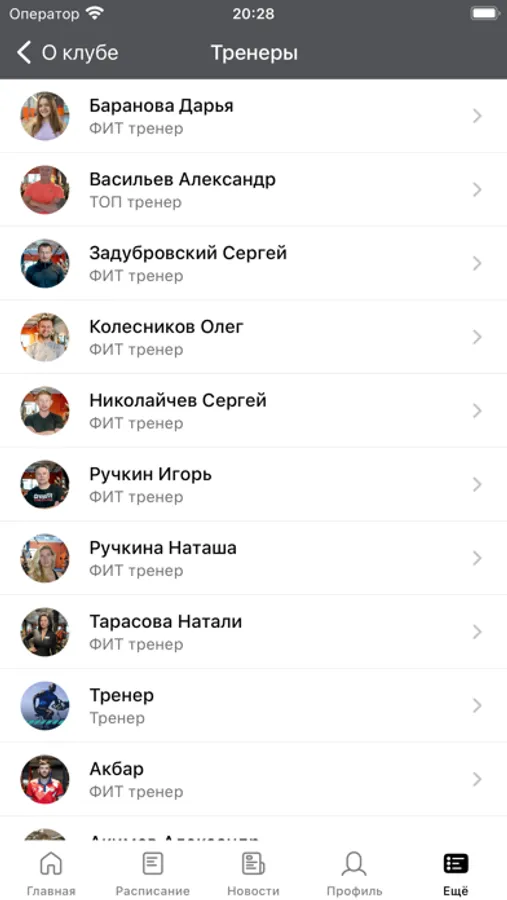 - посмотреть актуальное расписание всех видов занятий клуба