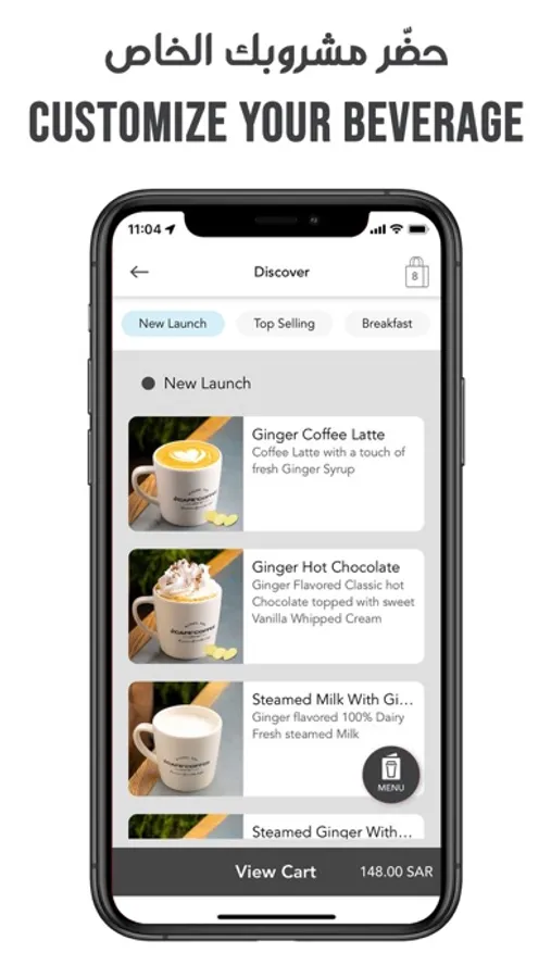3. Discover the best seller or simply select the beverage and food items to order: Just like in the store, beverages are customizable, including