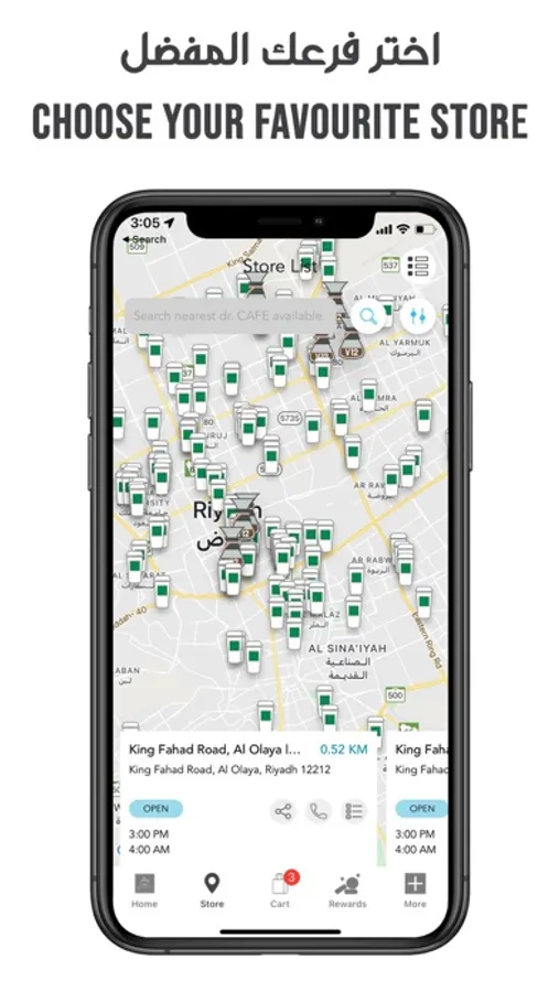 2. Once you click the system will give you the list of the nearest dr. CAFE® store to you. Choose the store