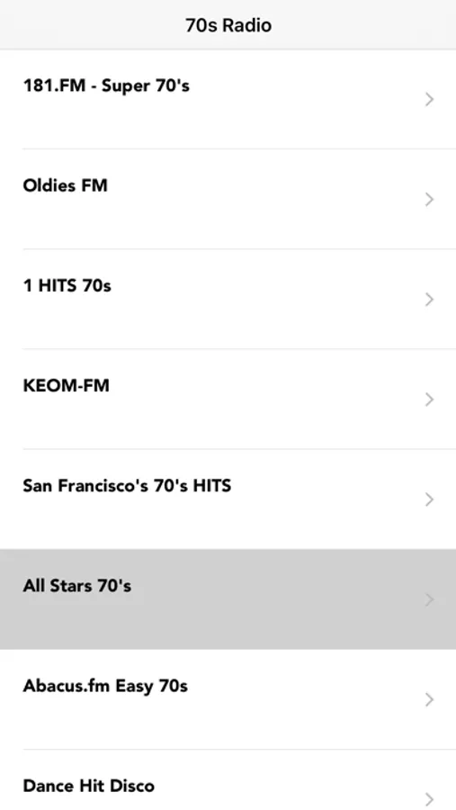 Some of the "70s Radio" Stations that the app include and some will be added in future app releases: