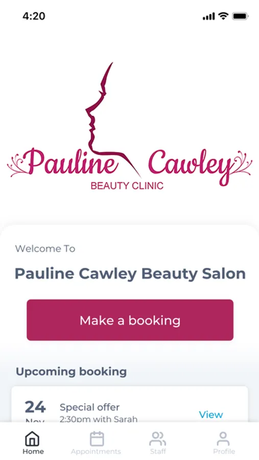 The Pauline Cawley Beauty Salon app makes booking your appointments and managing your loyalty points even easier. You're just a few taps away from feeling good and looking great!