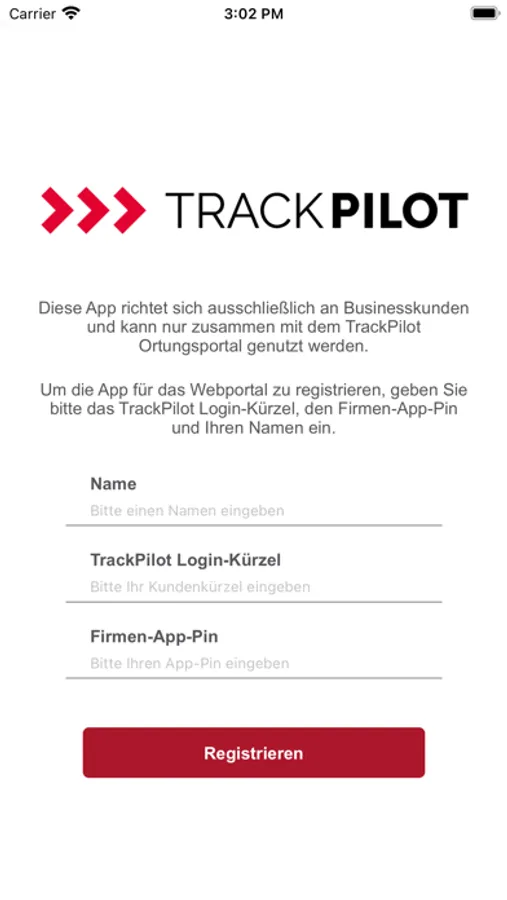 Voraussetzung für die Nutzung der App und des TrackPilot-Ortungsportals ist ein Ortungsvertrag mit der Moving Intelligence GmbH - erhältlich ab 5 Geräten unter www.plt-software.de/gps-ortung. Nach der Freischaltung der App im Portal können Sie u.a. die Funktionen Live-Ortung, Streckenverfolgung, elektronisches Fahrtenbuch, Arbeitszeitbericht, Gebietsalarm, Tourenplanung und Tourenoptimierung nutzen.