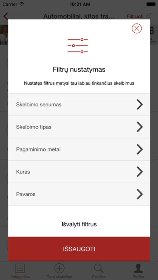 -Užsisakyti tau reikalingus skelbimus į telefoną (patogu ieškant darbo arba būsto)