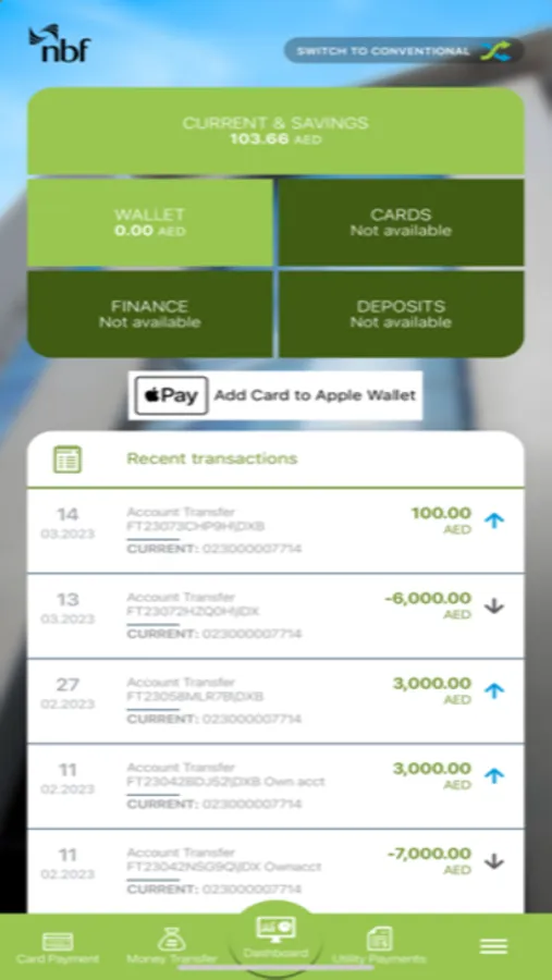 Designed to seamlessly connect you to NBF’s personal banking solutions via tablet or smartphone, you can access the following services: