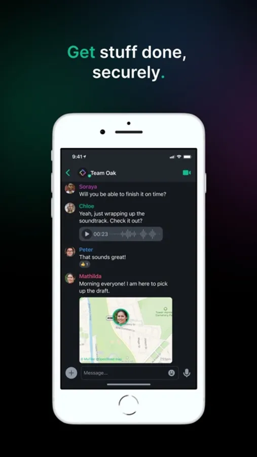 - Fully encrypted messages to allow safer corporate communication, even for remote workers