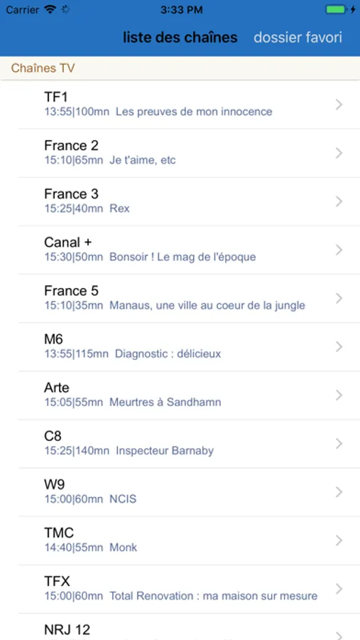 Cette application fournit un moyen convivial et pratique utilisateur de parcourir les horaires des chaînes de télévision françaises .