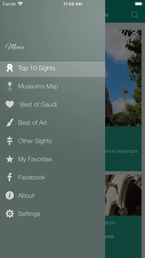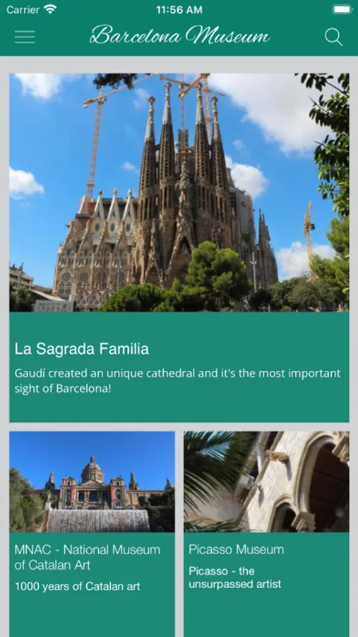 The App is divided into categories. First, you've got the "Top 10 sights". Here you'll find sights like the breathtaking Sagrada Família designed by Antoni Gaudí, the Moco Museum Barcelona and the Picasso Museum Barcelona.
