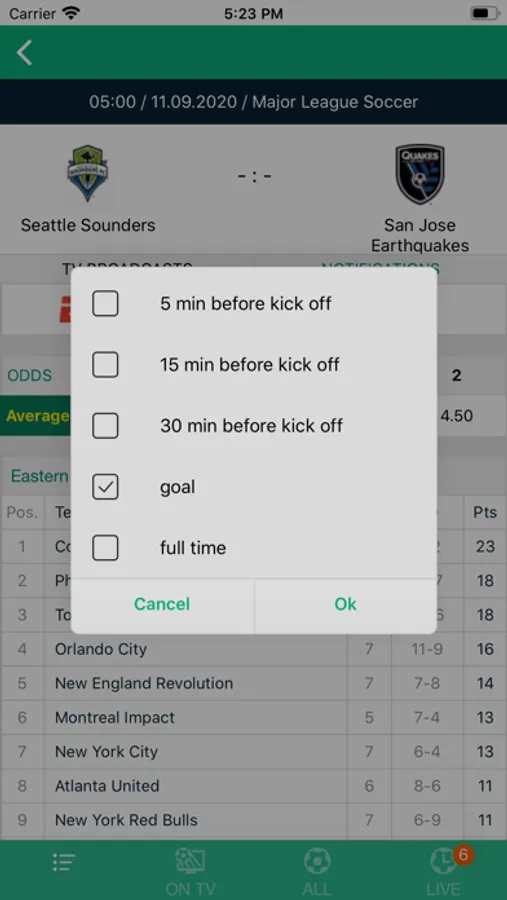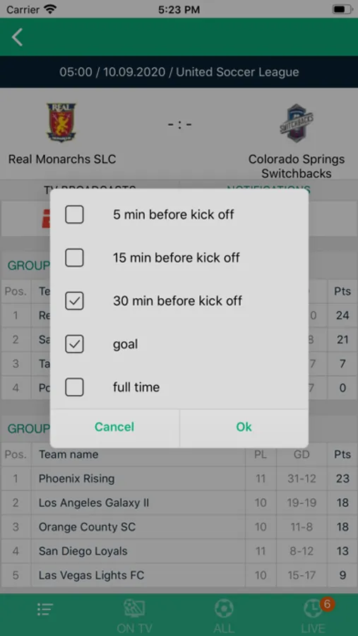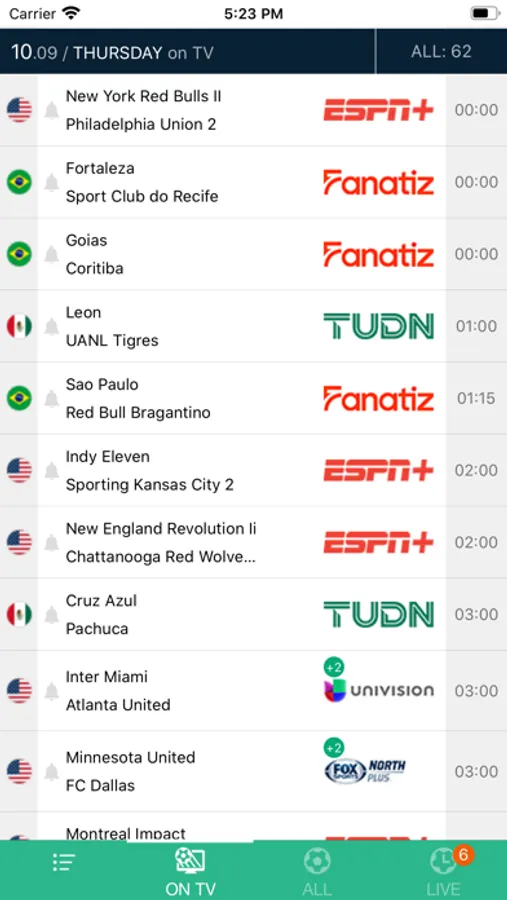 You will get the most accurate TV listing of soccer games as well as notifications for kick offs and live events as goals.