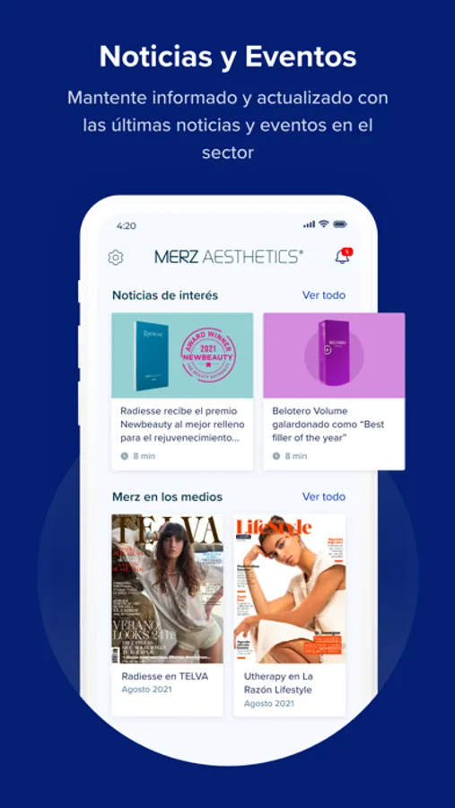 MerzApp ofrece una comunicación a tiempo real con el equipo Merz Aesthetics, y ayudamos a nuestros médicos a formarse adecuadamente y optimizar los recursos de su clínica de la forma más sencilla.