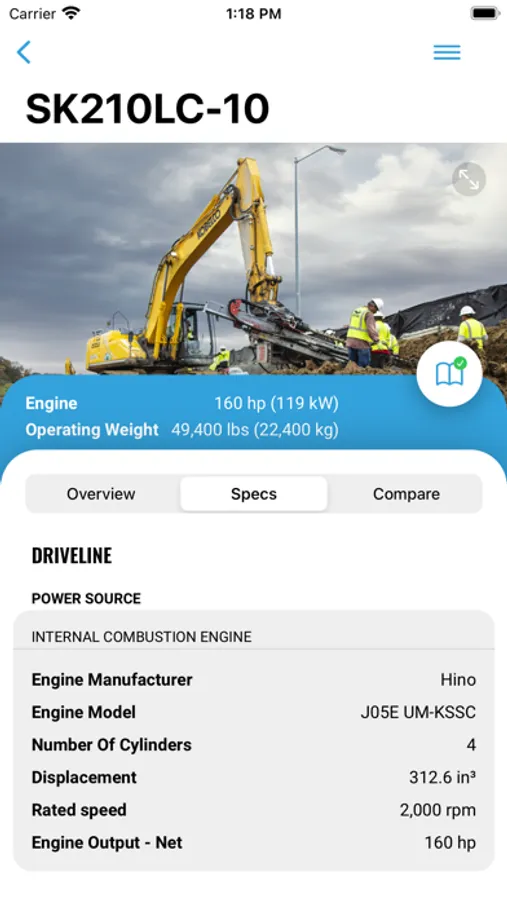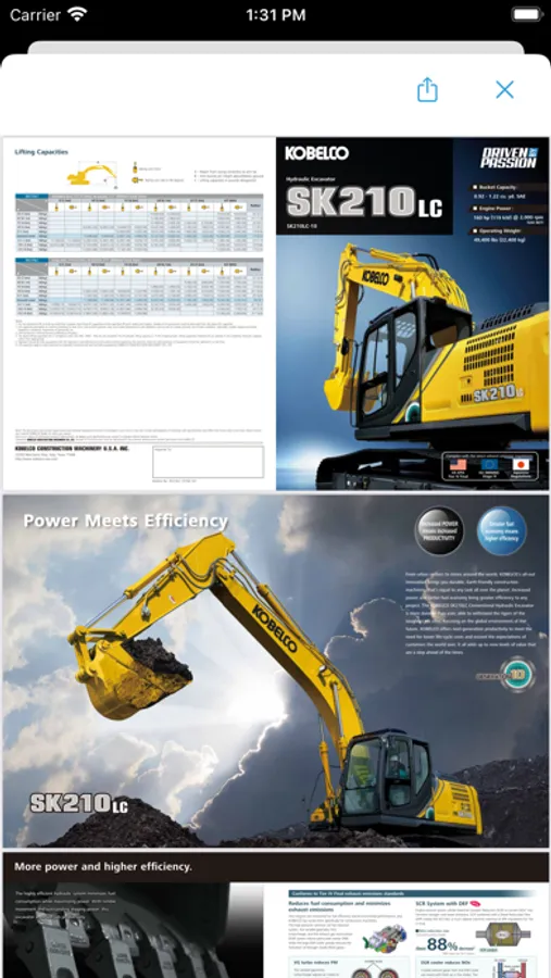 The app contains details on KOBELCO models including product overviews, specifications, images, downloadable brochures and videos of machines working on job sites. A comparison tool allows the user to compare specifications of all KOBELCO models with each other to help select the right machine for the job. The user can also compare the KOBELCO machines with competitor models of the same type and size to show why KOBELCO machines can dig more, build more and do more than others. In addition, users can locate the nearest KOBELCO dealer to call or receive directions, connect with the KOBELCO website and the KOBELCO social media pages.