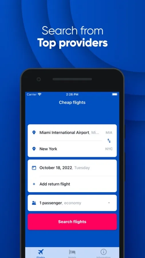 Now you can explore your destinations worldwide by cheapest flight tickets. Our flight booking application is perfect for travelers and expatriates. We are sure that it will save your money as well as valuable time.So spend less and fly more with our application.