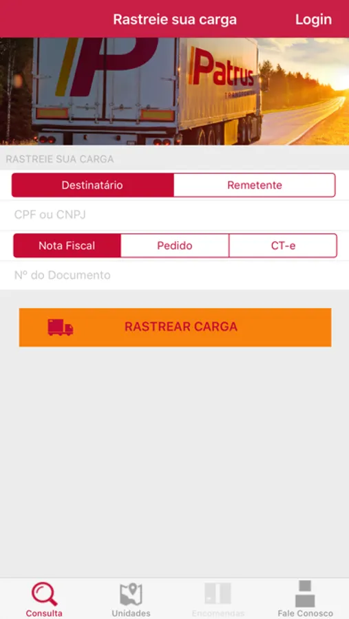 Aplicativo para consulta do tracking das entregas realizadas pela Patrus Transportes Urgentes Ltda.