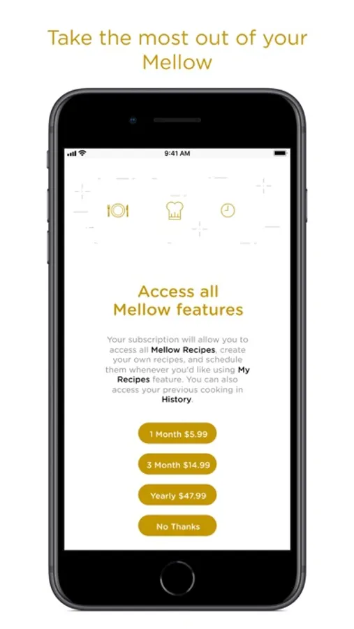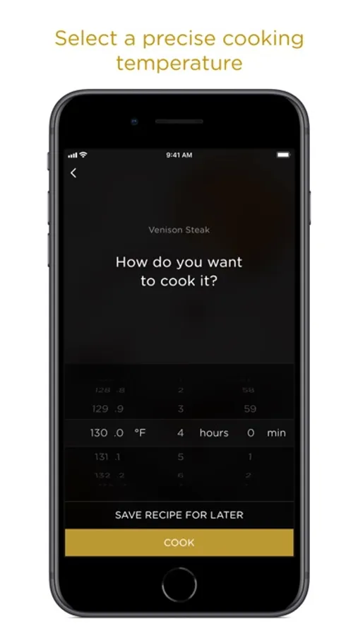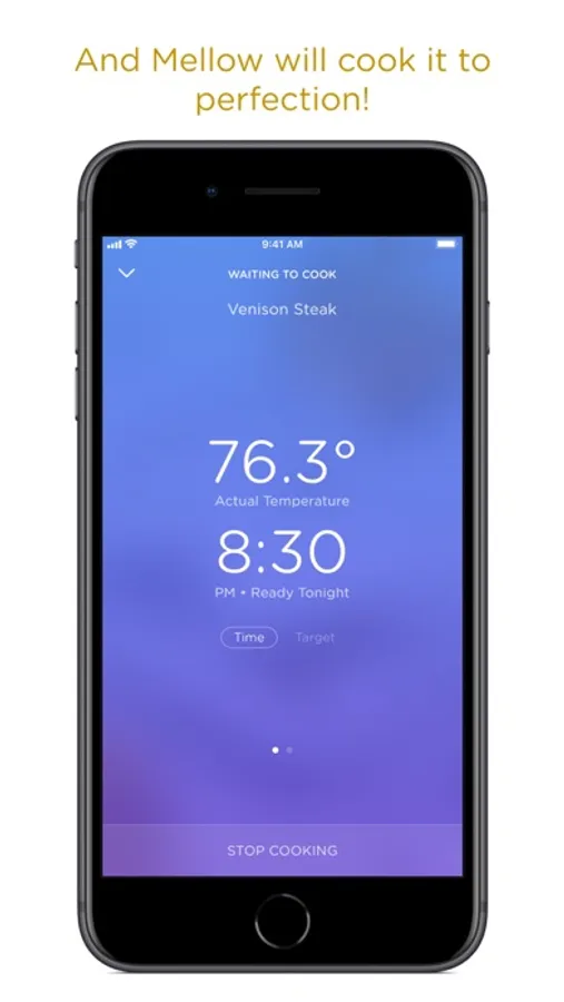 Using the Mellow app is as simple as selecting what you're cooking, how you would like it done and when you want it ready for. Mellow will do the rest and let you know when the food is ready! Mellow will also ask for your feedback and learn your taste over time so it can suggest you the best doneness every time!