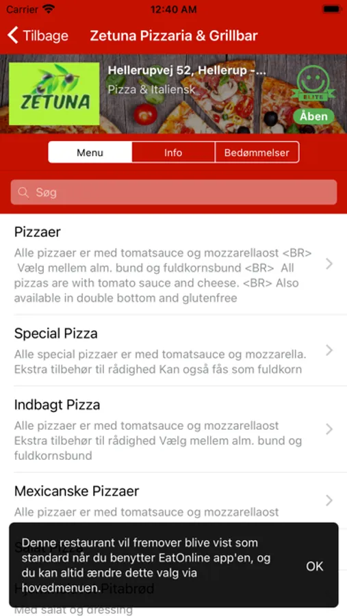 Bestil din mad online fra din favorit restaurant med EatOnline app.