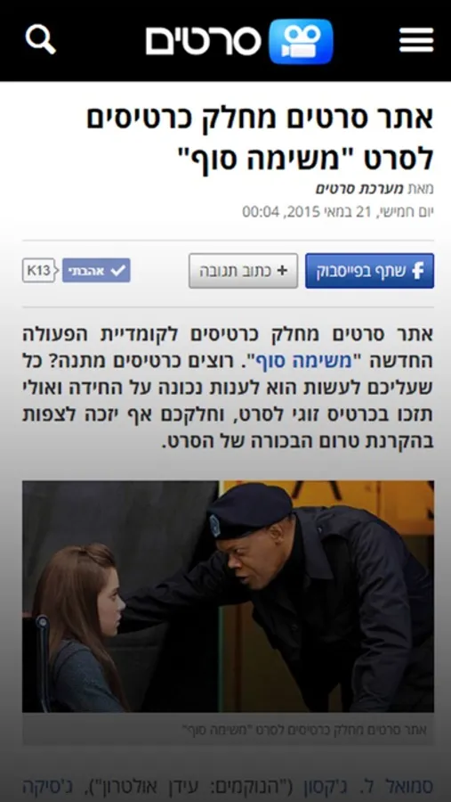 סרטים - האפליקציה הרשמית לאתר סרטים, מביאה לכם טריילרים מתורגמים והכי עדכניים, חדשות מעולם הקולנוע, הבידור והשטיח האדום, הגרלות כרטיסים לסרטים בקולנוע מתנה, ביקורות לסרטים ישנים וחדשים.