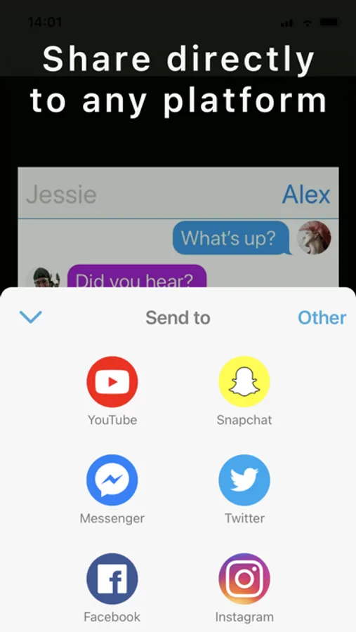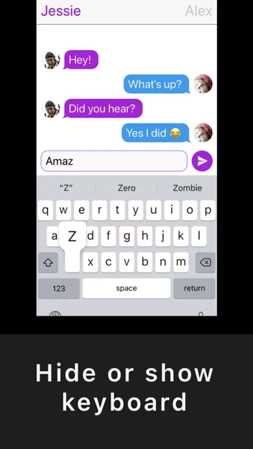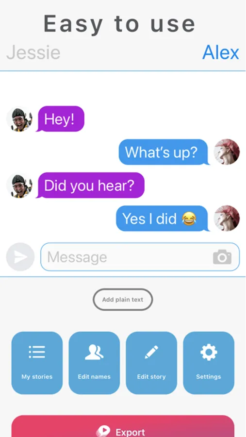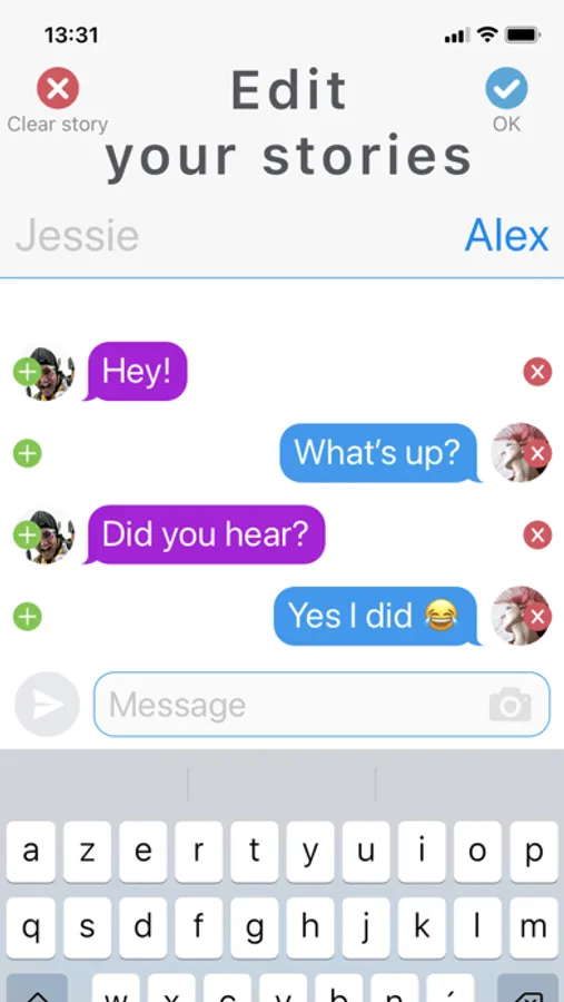 TextingStory allows you to write conversations just like any messaging app, except you can switch side by swiping left or right over the message area. You can also press the characters' names.