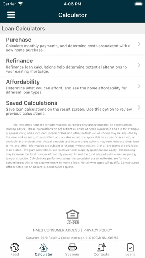 - Calculators: View and compare personalized lending scenarios for major loan types. You can even save your quotes to view again later.