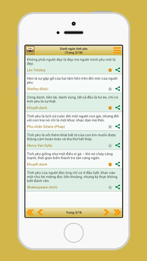 Danh Ngôn có chức năng đánh dấu những câu ưa thích & đồng thời cho phép bạn chia sẻ với bạn bè, người thân.