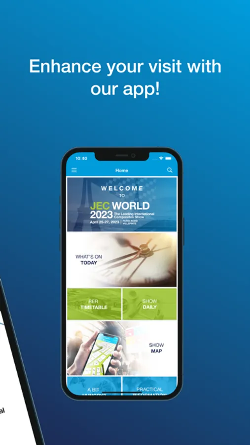 The official mobile app for JEC Word 2023, the Leading International Composites Show (April 25-27, 2023 - Paris Nord Villepinte).
