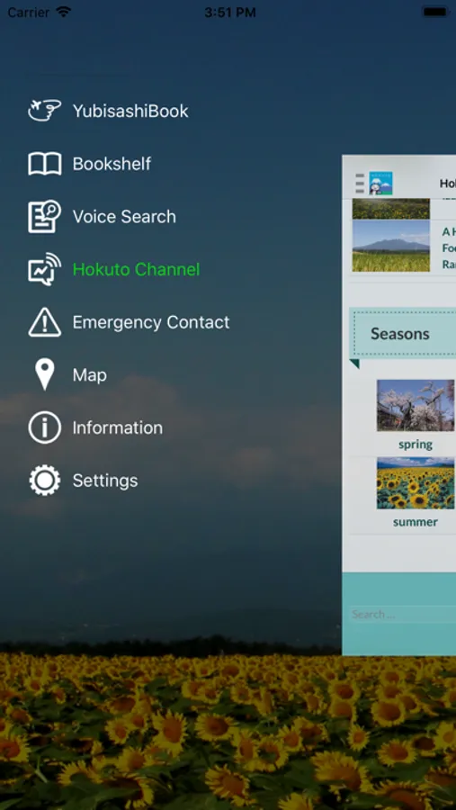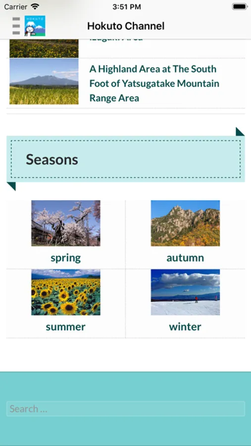 The easy-to-use interface lets you search for sightseeing spots by area or season, so you can experience the boundless nature, delicious food, and many other charms of Hokuto City. Download the app and enjoy your trip to Hokuto City even more.