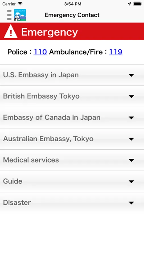 Find a list of phone numbers to police, hospitals and embassies - just in case.
