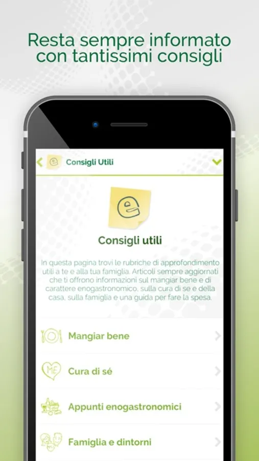 E poi, all’interno dell’area Consigli utili, troverai tanti articoli di approfondimento sul mangiar bene, sul fare la spesa, sulla cura di sé, sull’enogastronomia, sulla casa e sulla famiglia.