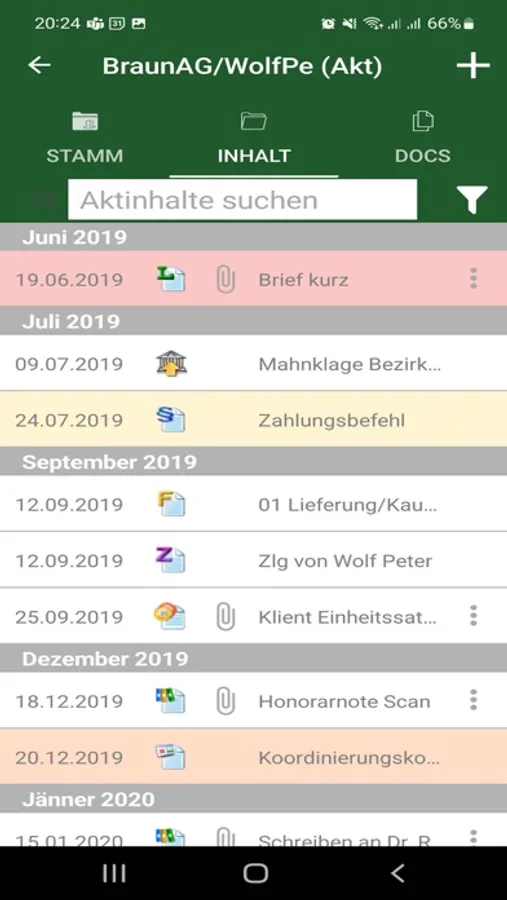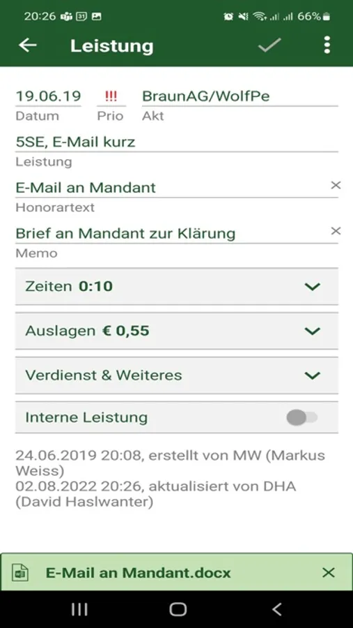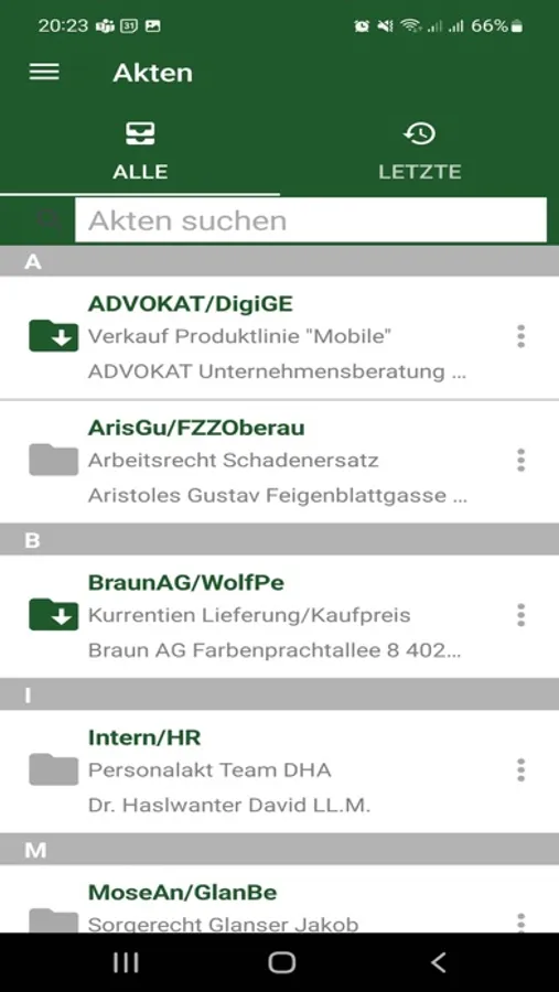 - Akten bearbeiten (Leistungen erfassen, Dokumente bearbeiten, Dateien hinzufügen)