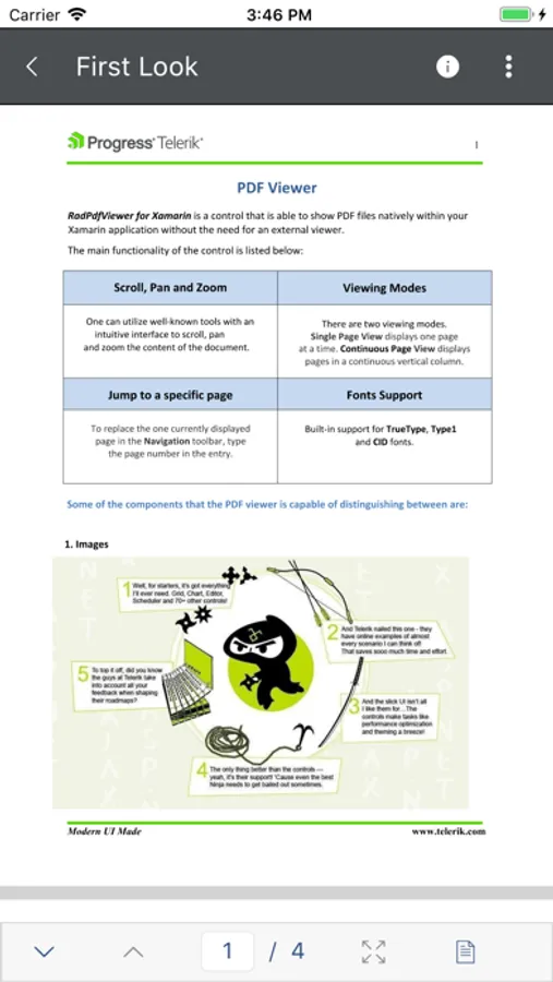 It enables you to easily load and display PDF documents natively in your application. It comes with full integration with the RadPdfViewerToolbar.