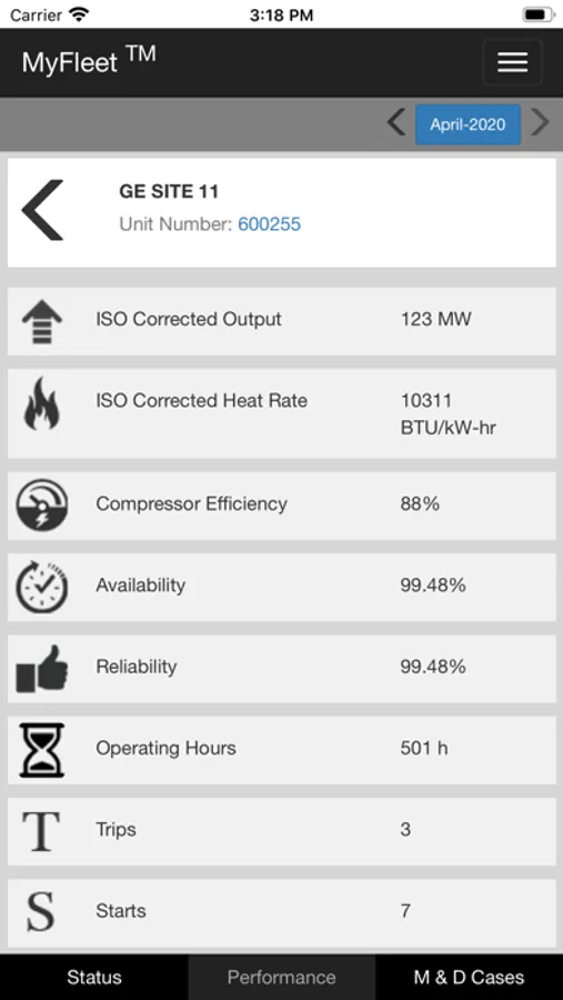MyFleet in My Pocket! This Industrial Internet app enables GE Power Services customers to view health and performance data real-time for their monitored equipment. Power Plant managers and owners can stay connected, be in control, and have 24/7 access to their Gas Turbine fleet.