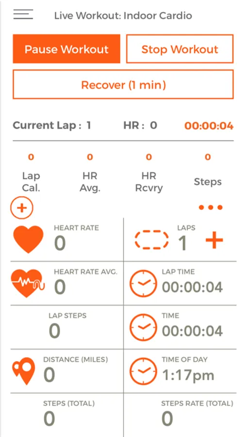 Customized data options include HR Drop (both in workout and after), Watt Hours, and live lap table summary.