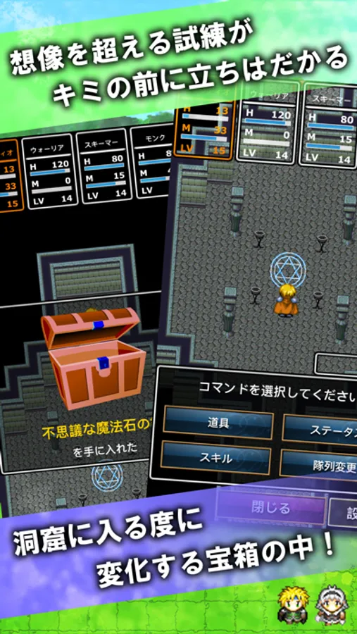 宝箱は洞窟に入るたびに中身が変わるので、自分にふさわしい武器が手に入らない場合はもう一度探し直す必要があります。