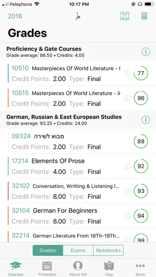 • Access to your courses, including grades, of any year.